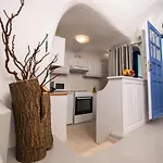 A Santo Blue Horizon Blue Domes View Villa a belső udvarra néz. Az Ía városi szállás magába foglal egy fürdőszobát spa káddal, külön WC-vel és zuhanyzóval. A fürdőszobákban hajszárító, fürdőlepedők és papucsok is biztosított az ön kényelme érdekében.